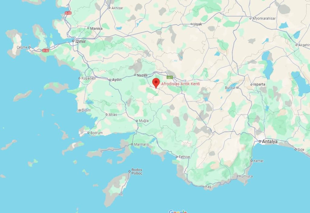 Afrodisias Antik Kenti, Aydın ilinin Karacasu ilçesi sınırları içinde yer almaktadır. Aydın merkezden Afrodisias’a ulaşım oldukça kolaydır.