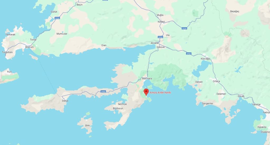 - Marmaris merkezden Amos Antik Kenti’ne ulaşım yaklaşık 20-25 dakika sürer.