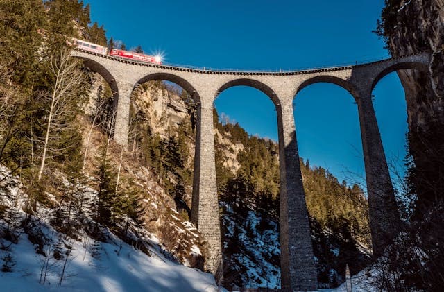 Bernina Express, İsviçre’den İtalya’ya uzanan güzergahıyla masalsı bir yolculuk sunar. İsviçre’nin Chur kentinden başlayan tren, Alpler üzerinden İtalya’nın Tirano şehrine varır. Rotanın bir kısmı UNESCO Dünya Mirası listesinde yer alır ve manzaralar kış mevsiminde beyaz örtüyle kaplanarak daha da büyüleyici hale gelir.