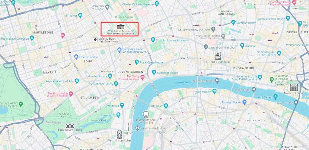 - Metro: British Müzesi’ne en yakın metro istasyonu “Tottenham Court Road” (Central ve Northern hatları) olup, istasyondan kısa bir yürüyüşle müzeye ulaşabilirsiniz.