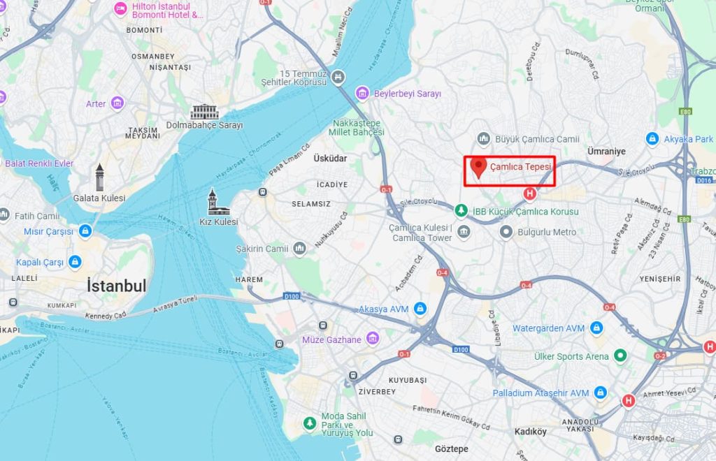 📍 Büyük Çamlıca Tepesi, Üsküdar (Denizden yükseklik: 268m)