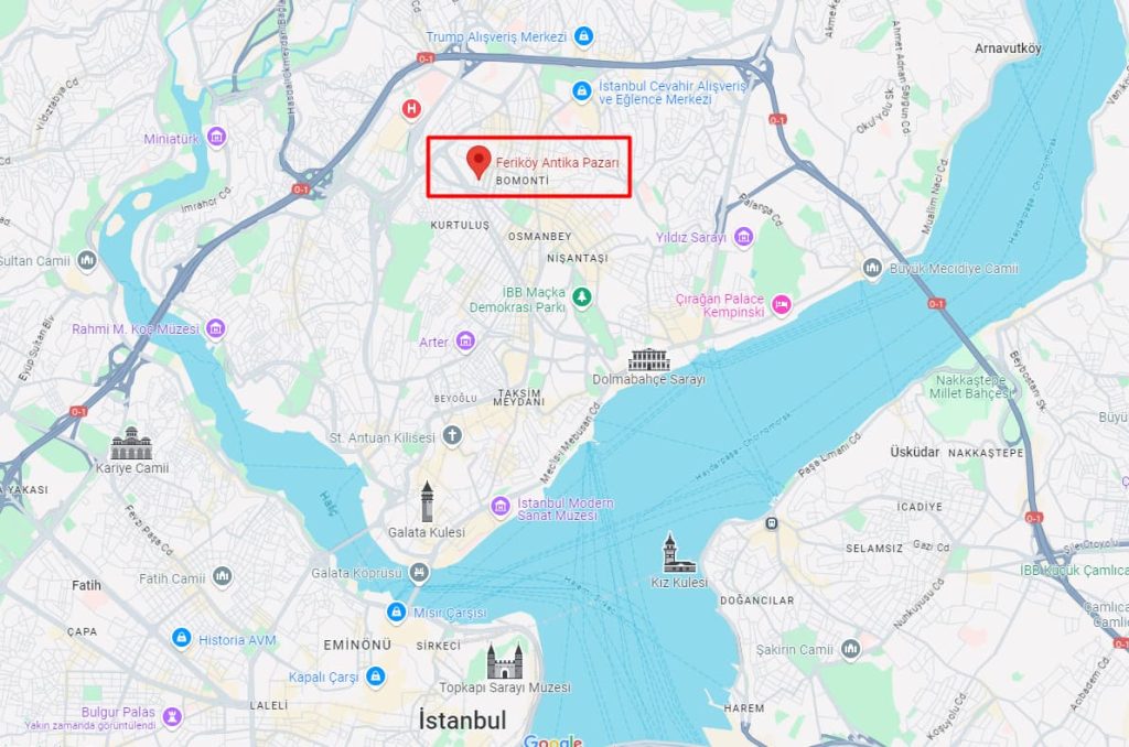 Feriköy Antika Pazarı, Şişli Feriköy Mahallesi‘nde, kolayca ulaşılabilecek merkezi bir konumda yer alır.