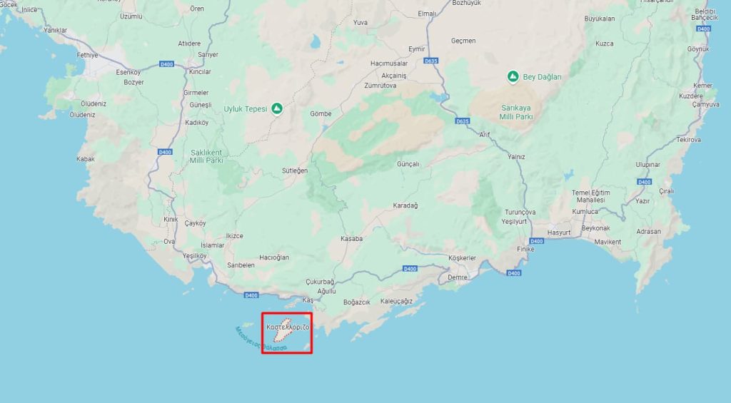 Türkiye’ye Uzaklığı | 2.1 km (Kaş’tan feribotla 20 dakika) |