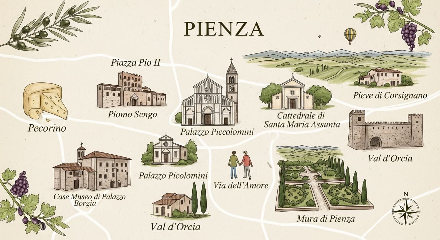 🗺️ Pienza’da Gezilecek Yerler Haritası