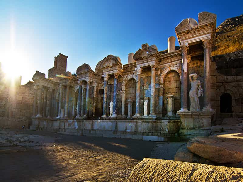 Sagalassos Antik Kenti’nde birçok çeşme bulunmaktadır, ancak bunlardan en ünlüsü ve en iyi korunmuş olanı “Antonine Çeşmesi” olarak bilinir.