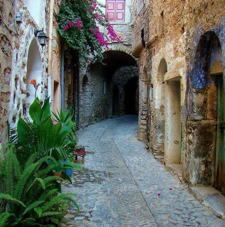 Sakız Adası’nın en iyi korunmuş ortaçağ köylerinden biridir. Taş evleri, dar sokakları ve surlarıyla ünlüdür.