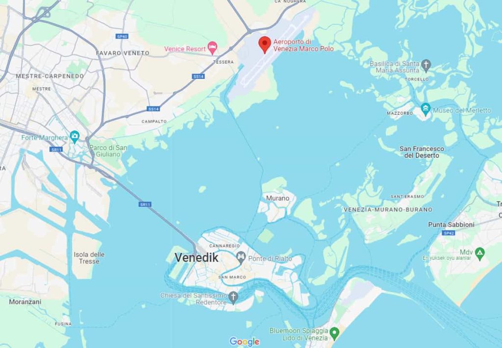 Venedik Marco Polo Havalimanı (VCE), İtalya’nın kuzeydoğusunda, Venedik kentine yaklaşık 13 kilometre uzaklıkta bulunur. Havalimanı, Venedik’in ana adası olan Venedik’in kara bağlantısının olduğu Mestre bölgesine daha yakındır. Venedik’in tarihi merkezine ise havalimanından yaklaşık 8-10 km mesafededir.